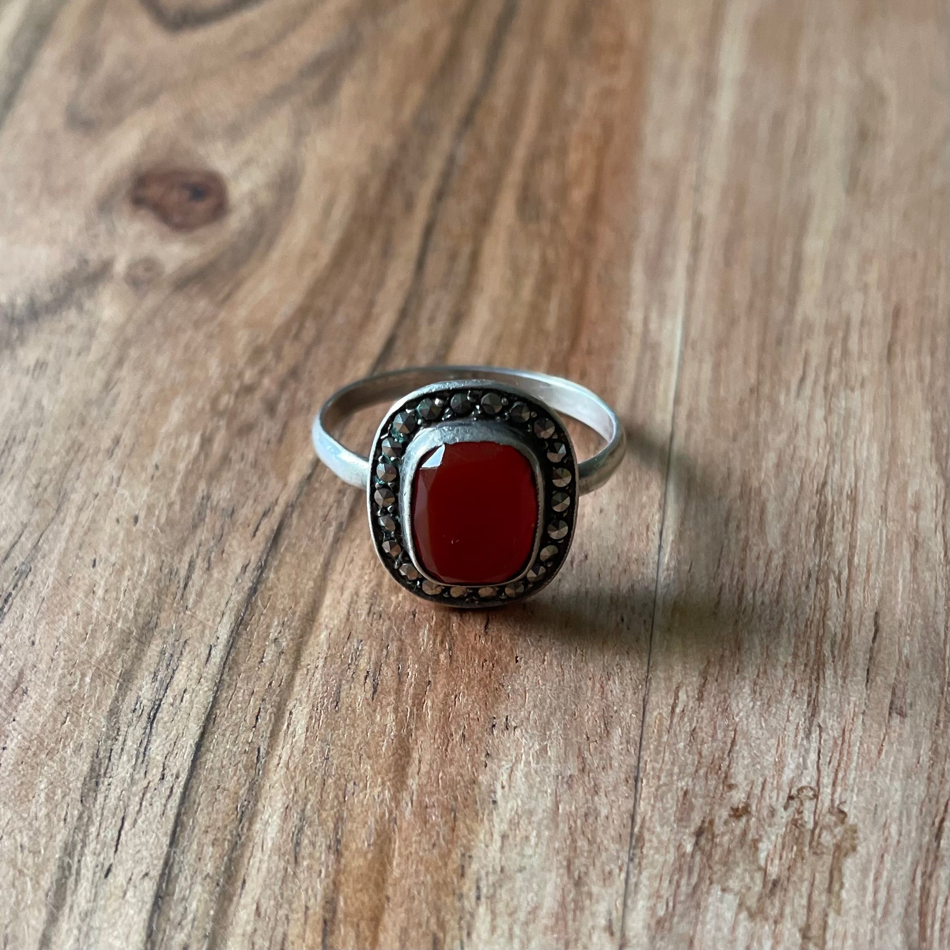 Prachtige 925 zilveren ring belegd met dof rode edelsteen.