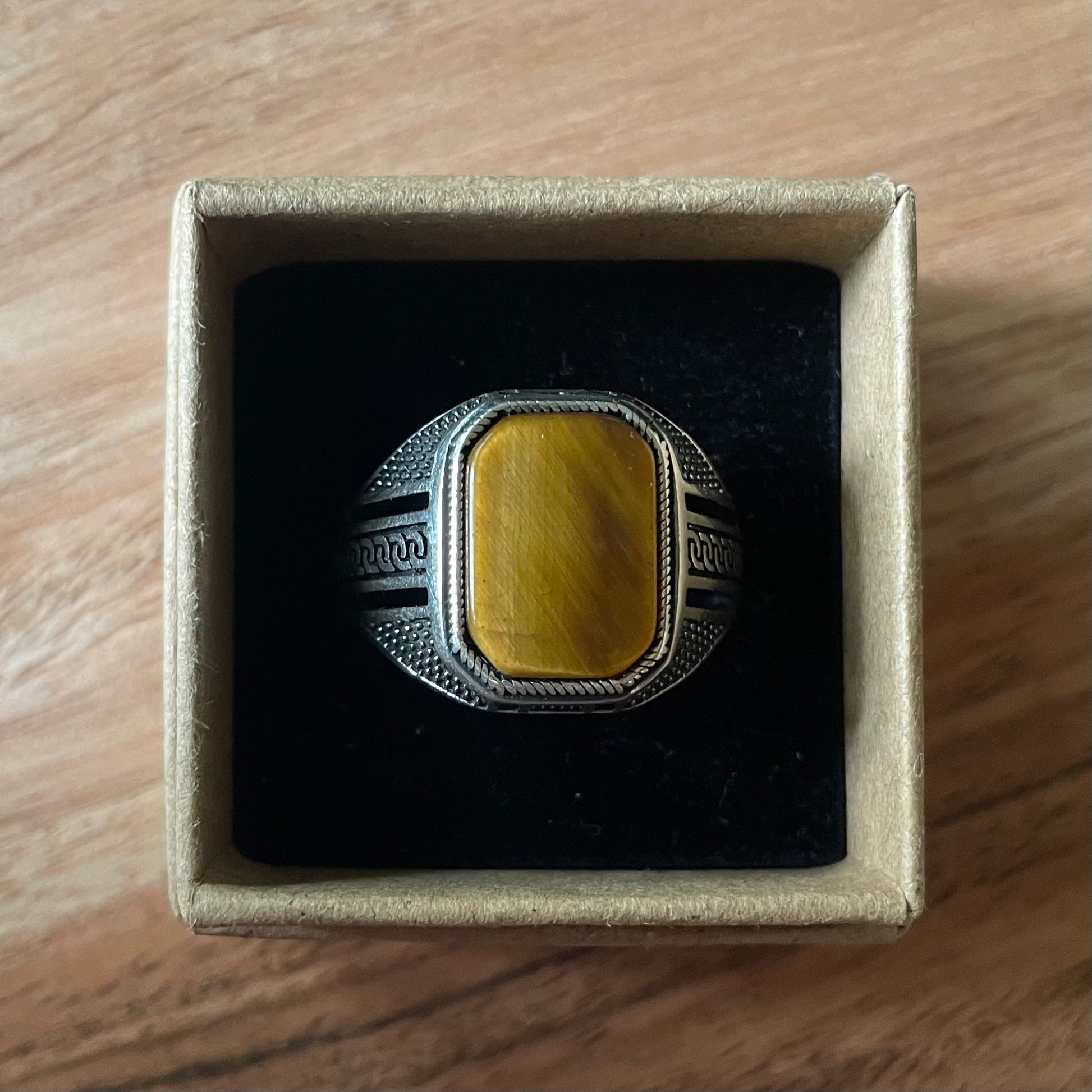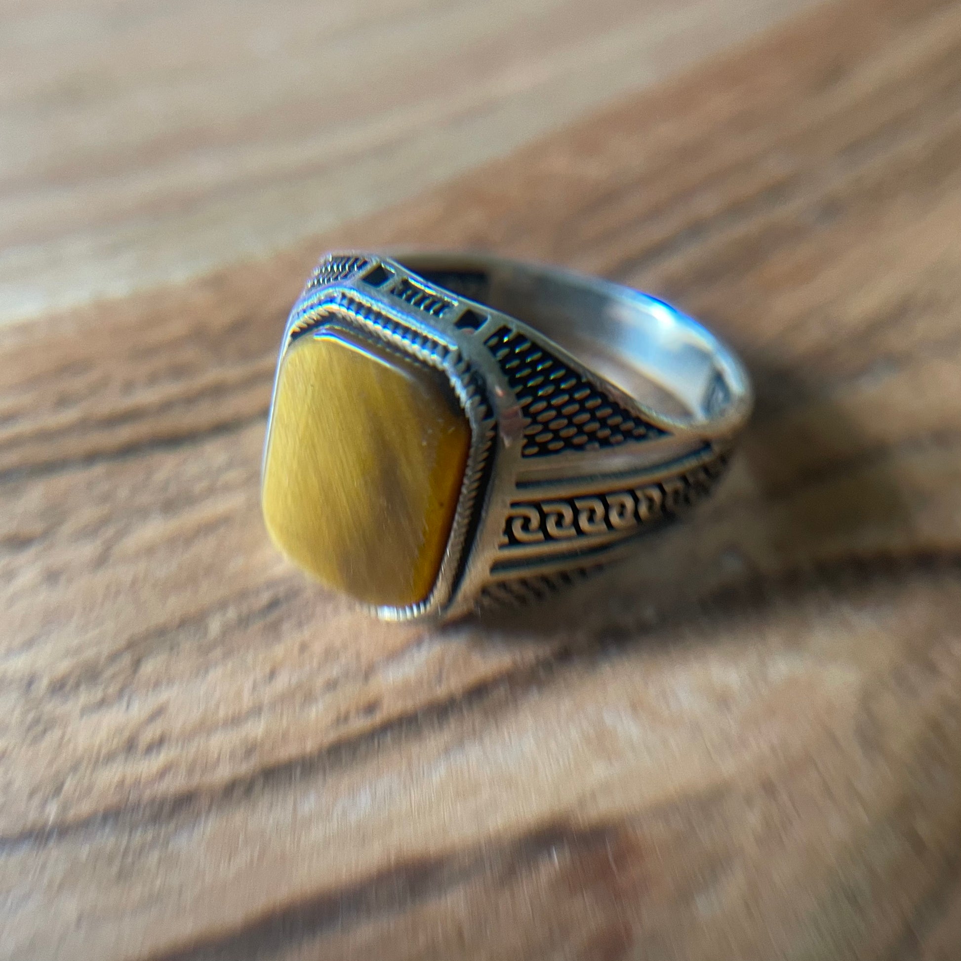Sierlijke design 925 zilveren zegelring belegd met een mooie tijgeroog edelsteen.